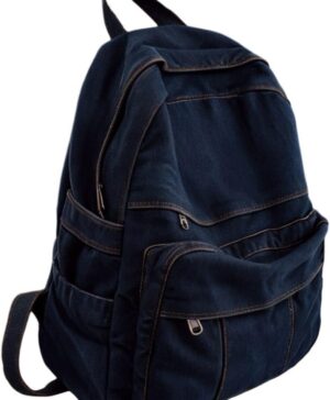 Dark Wash Denim Jean Backpack for Women & Men Retro Aesthetic Rucksack Basic Backpack for High / Students Travel Laptop Bag