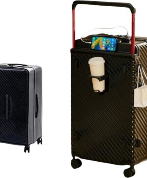 Carry On Luggage 20In Wide Handle with 360 Spinner Wheels, USB & Type C Port, Cup Holder & , Hard Case Luggage, Hardshell Travel Suitcase for Men Women (PVC Cover For Free) Black