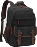 - VINTAGE DESIGN & DURABLE MATERIAL: This black canvas laptop backpack with USB charging port features a classic magnetic snap in the front, while opening and closing the bag more convenient add the bag a vintage look. Made of high-density ripstop canvas and vegan leather trim with solid hardware, it’s multi-functional, durable, and lightweight. Carry-on size:17.7 x 11.9 x 6.5 inches