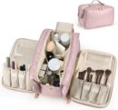 - Large Capacity: Measuring 10.6x7x6.6 inches, the cosmetic bag has 3 separate compartments to comfortably hold all your favourite cosmetics, make-up tools, toiletries, travel essentials, etc. Each compartment comes with multiple pockets to keep your cosmetics organised